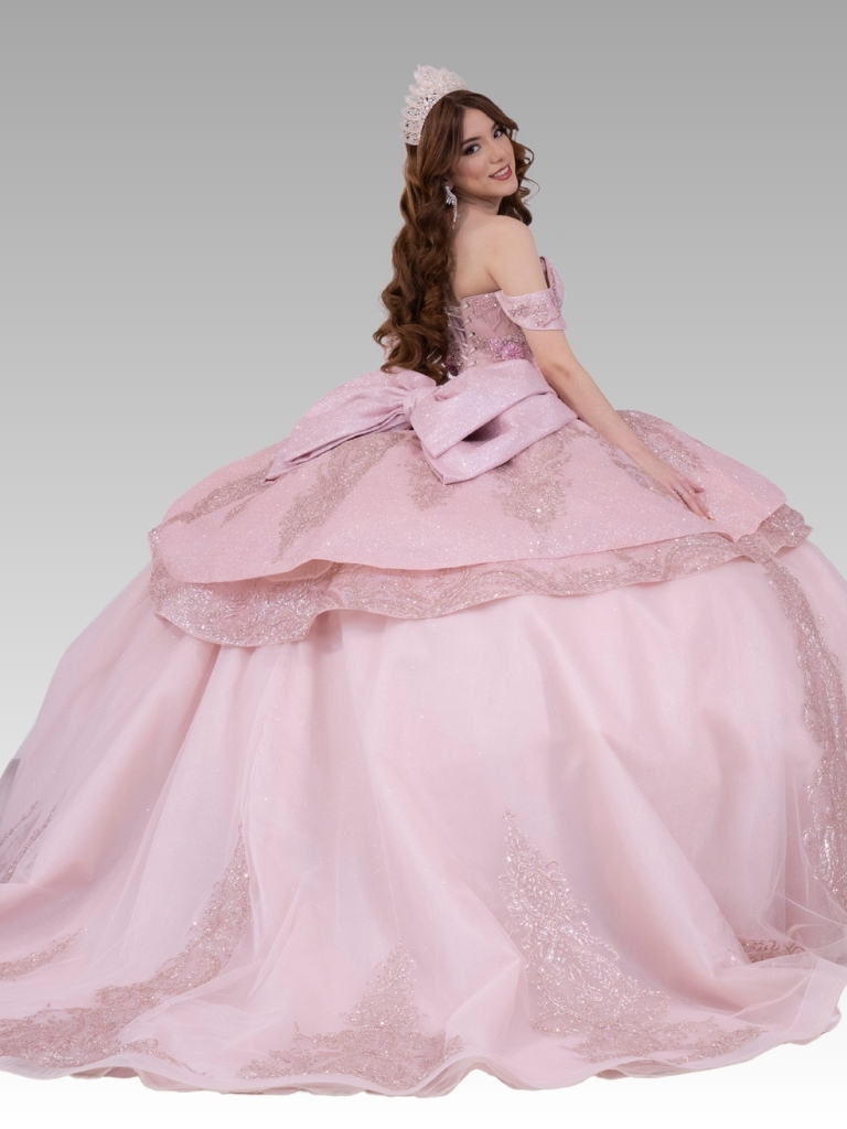 Back Detail: Includes a majestic satin bow with sparkle, which adds that dramatic and photogenic touch that every quinceañera seeks for her grand entrance.